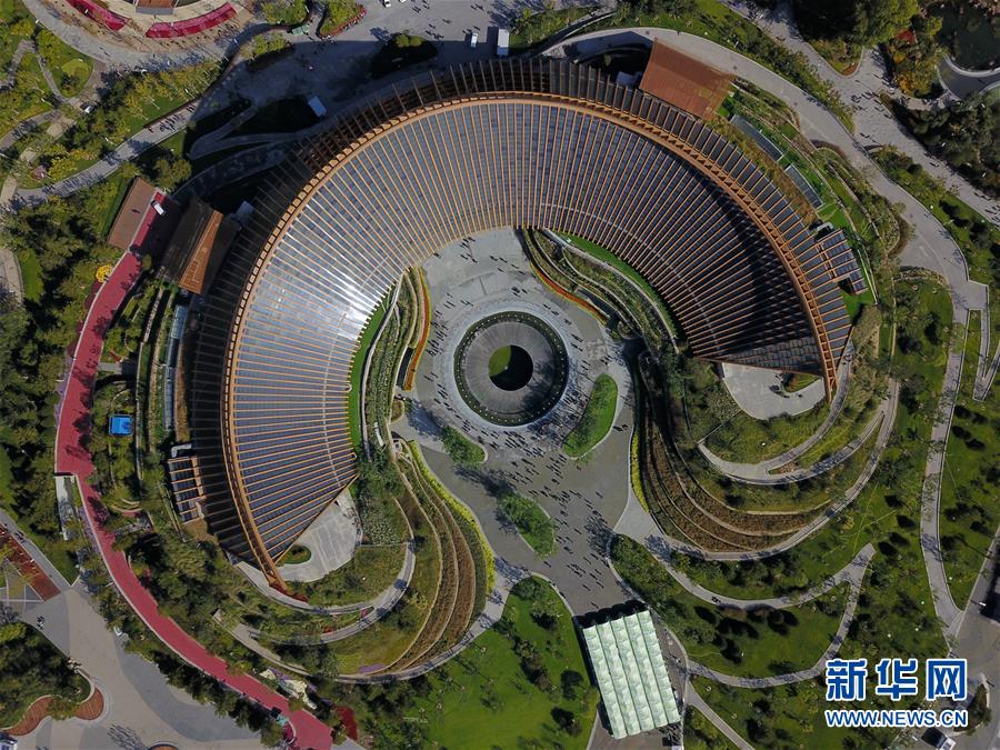 這是北京世園會中國館(10月7日無人機拍攝)。 新華社記者 張晨霖 攝