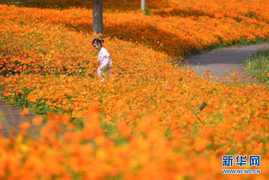 10月9日,小朋友在四季花海城市公園游玩。 秋日時(shí)節(jié),位于安徽省合肥市的四季花海城市公園花香四溢,色彩繽紛,成為游客和市民休閑游玩的好去處。 新華社記者 張端 攝