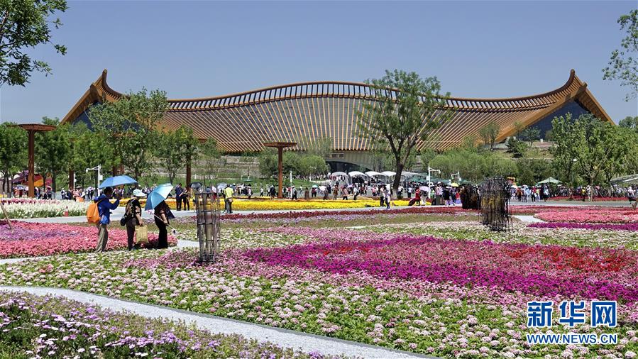 游客在北京世園會(huì)中國館前游覽(5月23日攝)。新華社記者李欣攝