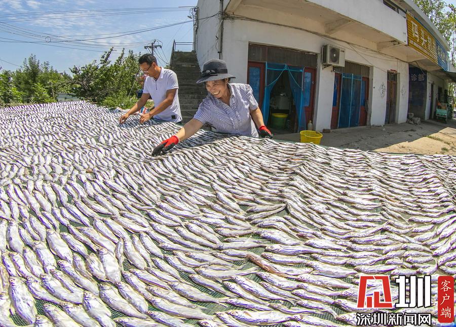 岸上,家家戶(hù)戶(hù)都在忙著晾曬剛捕撈上來(lái)的毛刀魚(yú)、小白魚(yú)和武昌魚(yú)。