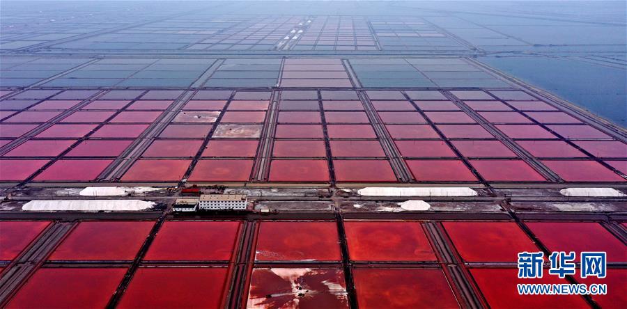 日前,山東省無(wú)棣縣境內(nèi)的魯北鹽場(chǎng)進(jìn)入海鹽收獲季節(jié),星羅棋布的鹽池將大地裝扮得繽紛如畫(huà)。無(wú)棣縣位于山東省北部渤海之濱,全縣擁有鹽田365萬(wàn)公畝,是我國(guó)重要的海鹽生產(chǎn)基地。據(jù)無(wú)棣縣工信局統(tǒng)計(jì),今年1-9月份,當(dāng)?shù)卦}產(chǎn)量111.7萬(wàn)噸。