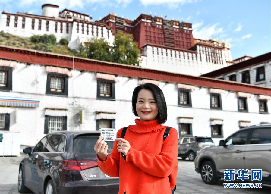 10月15日,從西寧來的游客張書培展示她用身份證換取的布達(dá)拉宮散客免費(fèi)預(yù)約券。 根據(jù)西藏自治區(qū)《第三輪“冬游西藏”市場促進(jìn)優(yōu)惠政策》,第三輪“冬游西藏”時段為2019年10月15日至2020年3月15日,共計5個月。除寺廟景區(qū)外,全區(qū)國有3A級(含3A級)以上景區(qū)免費(fèi)游覽,國有3A級以下和非國有A級景區(qū)門票在淡季價格基礎(chǔ)上減半。 新華社記者 李鑫 攝