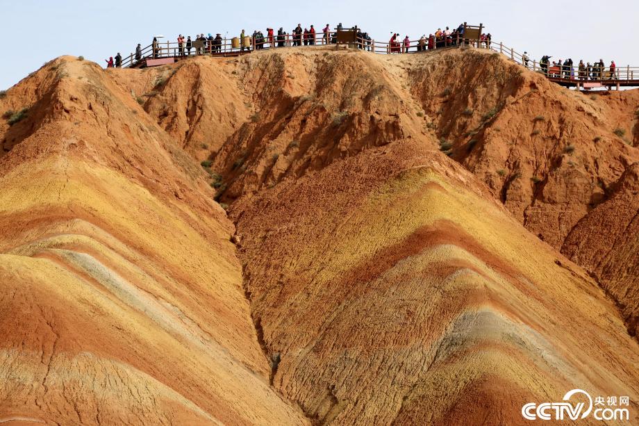 央視網(wǎng)消息:2019年10月15日,金秋時(shí)節(jié),位于甘肅省張掖市臨澤縣的七彩丹霞景區(qū)進(jìn)入旅游旺季,吸引眾多游人紛至沓來。張掖七彩丹霞景區(qū),分布面積約50公里,是中國北方干旱地區(qū)發(fā)育最典型的丹霞地貌。在方圓數(shù)十平方公里的范圍內(nèi),隨處可見有紅、黃、橙、綠、白等多種鮮艷的色塊或線條,把一座座山峰,一條條溝壑,裝點(diǎn)成一幅幅絢麗多姿、燦爛奪目的畫圖。圖片來源:視覺中國