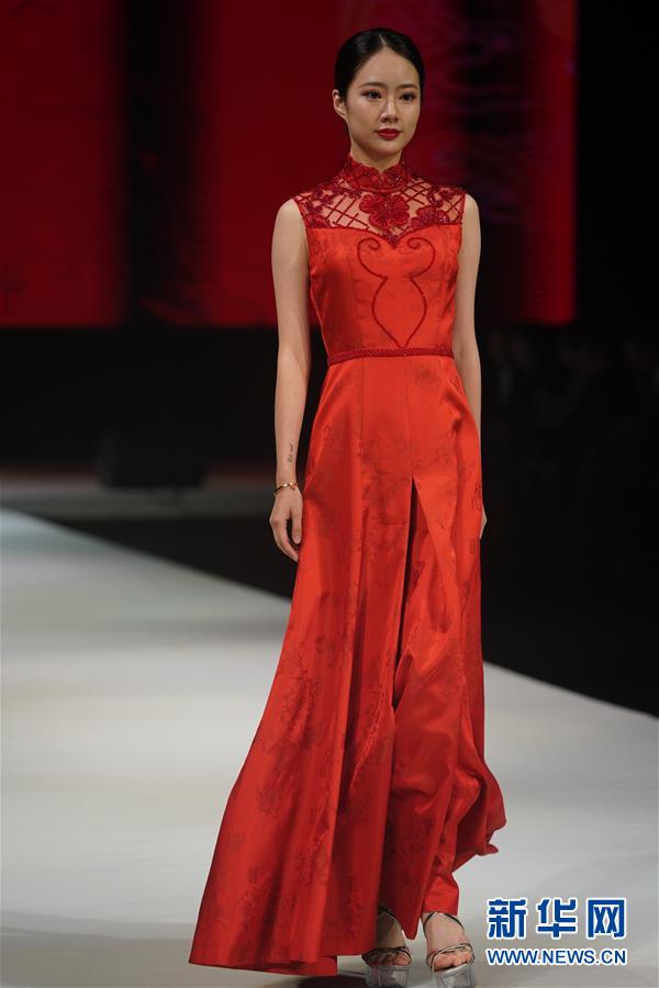 10月16日,模特在展示婚慶禮服。 當(dāng)日,“愿·緣·圓”上久楷婚慶主題秀在江蘇省蘇州市吳江區(qū)盛澤鎮(zhèn)舉行。 新華社記者 季春鵬 攝