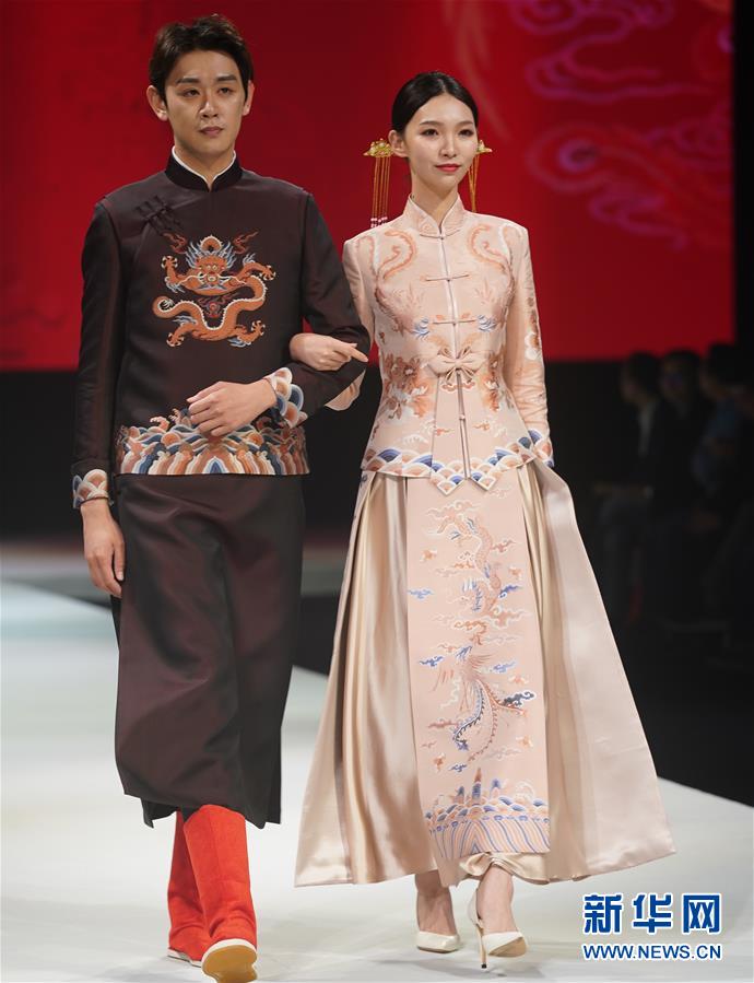 10月16日,模特在展示婚慶禮服。 當日,“愿·緣·圓”上久楷婚慶主題秀在江蘇省蘇州市吳江區(qū)盛澤鎮(zhèn)舉行。新華社記者 季春鵬 攝