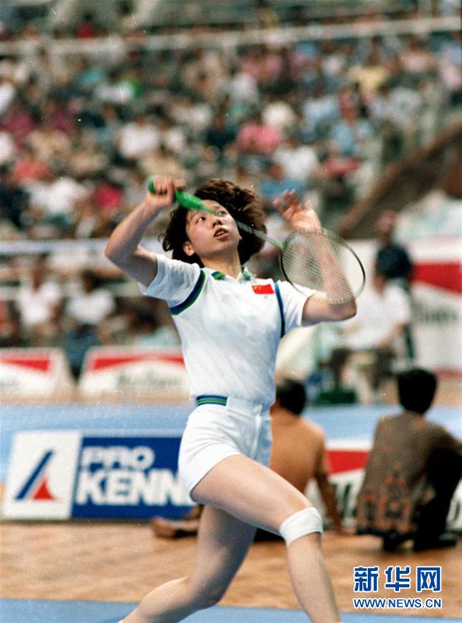 圖為韓愛萍在吉隆坡舉行的世界羽毛球男女團(tuán)體錦標(biāo)賽中舉拍回?fù)鯇Ψ降膿羟颍ㄙY料照片),最終中國隊(duì)奪得女子團(tuán)體冠軍。新華社記者黃景達(dá)攝