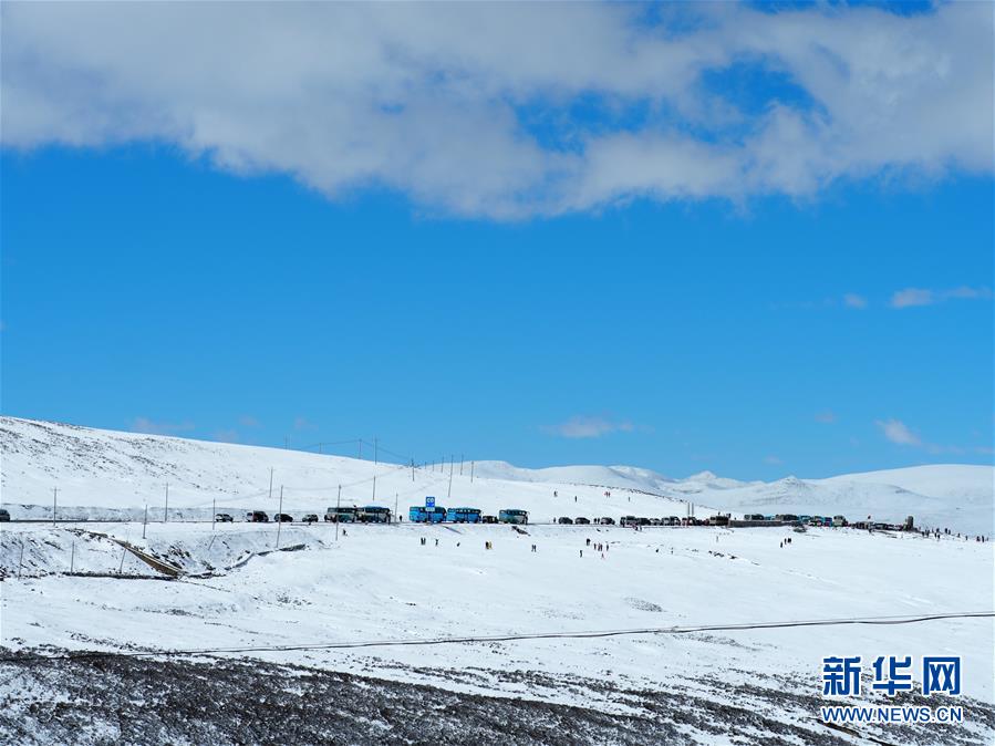 10月17日,在川藏線高爾寺山至理塘路段,成隊(duì)的車輛停在觀景臺(tái)附近。 新華社記者 王迪 攝
