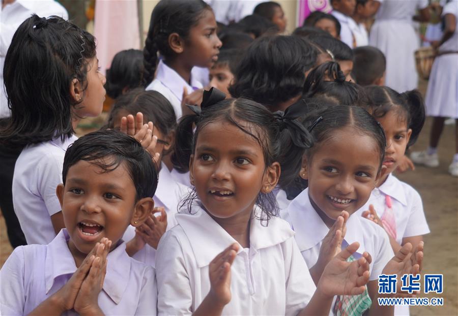 10月18日,在斯里蘭卡漢班托塔地區(qū)的提薩普拉學(xué)校,學(xué)生們在校門口歡迎前來參加教學(xué)樓落成儀式的客人。 18日,斯里蘭卡南方省漢班托塔地區(qū)的提薩普拉學(xué)校洋溢著一派歡天喜地的氣氛,全校師生及家長共同慶祝由中國招商局慈善基金會援建的兩層新教學(xué)樓正式落成,許多學(xué)生當天還領(lǐng)到了中國企業(yè)贊助的嶄新書包。附近地區(qū)的其他學(xué)校校長和村民也紛紛趕來參加儀式。 新華社記者唐璐攝