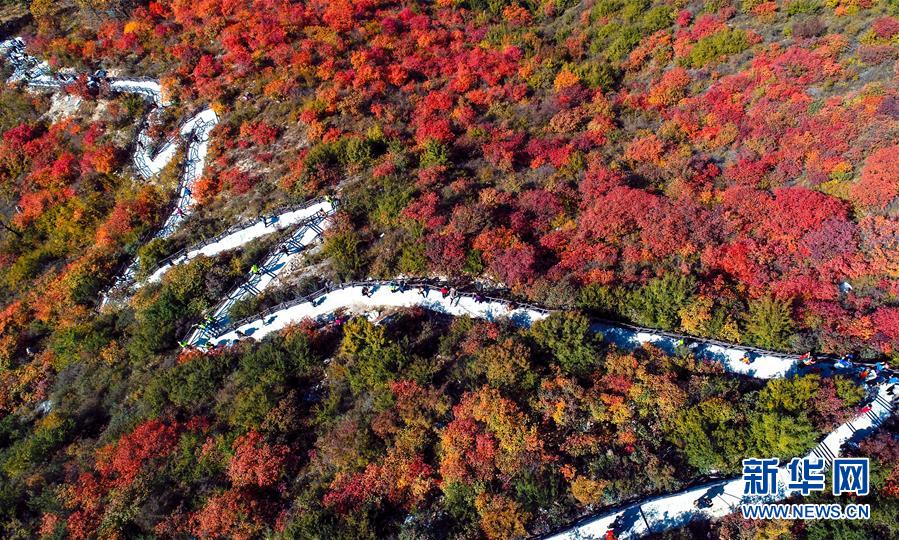 這是10月19日無人機拍攝的河北省涉縣太行紅葉大峽谷景色。金秋十月,河北省涉縣偏城鎮(zhèn)太行紅葉大峽谷的紅葉進入觀賞佳期,吸引眾多游客前來登山賞景。新華社記者王曉攝