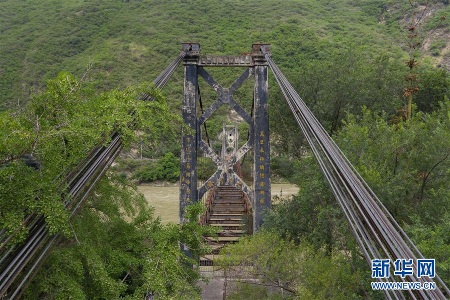 這是大渡河的鋼索汽車吊橋(6月27日)。 新華社記者 江宏景 攝