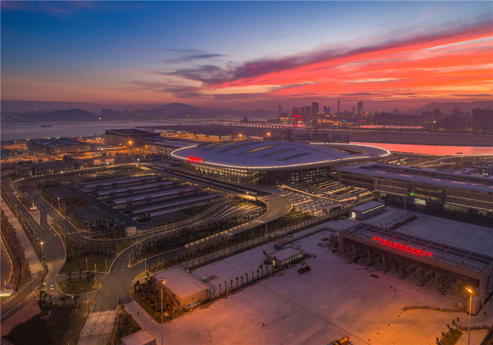 晨曦中的港珠澳大橋珠澳口岸人工島(10月24日無人機(jī)拍攝)。2018年10月23日,港珠澳大橋正式開通。在這座圓夢橋、同心橋、自信橋、復(fù)興橋開通一周年之際,記者親自體驗“一橋連三地、一日游三城”的悠閑與便利,于不同的旖旎風(fēng)光中自在游覽,在不同的城市風(fēng)貌間自如切換。新華社記者張金加攝