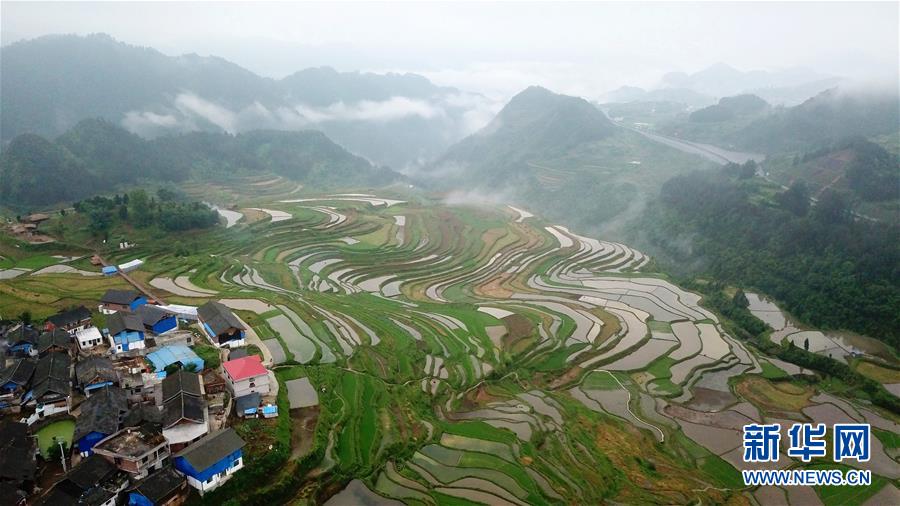 這是5月18日無人機拍攝的貴州省丹寨縣龍泉鎮(zhèn)高要梯田景色。初夏時節(jié),位于貴州省丹寨縣龍泉鎮(zhèn)的高要梯田景色優(yōu)美。新華社記者楊文斌攝