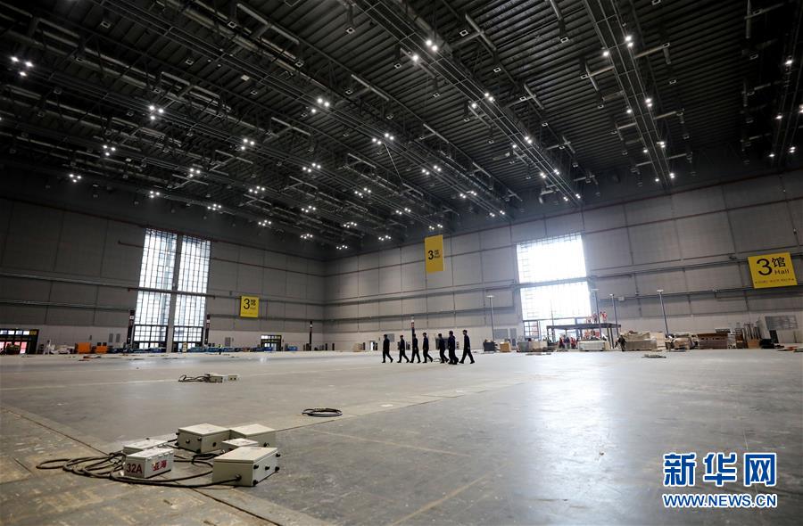 10月25日,在展館內(nèi),展臺框架搭建工作正在進行。 新華社記者 方喆攝