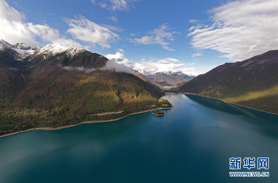 西藏林芝境內的巴松湖(5月2日無人拍攝)。