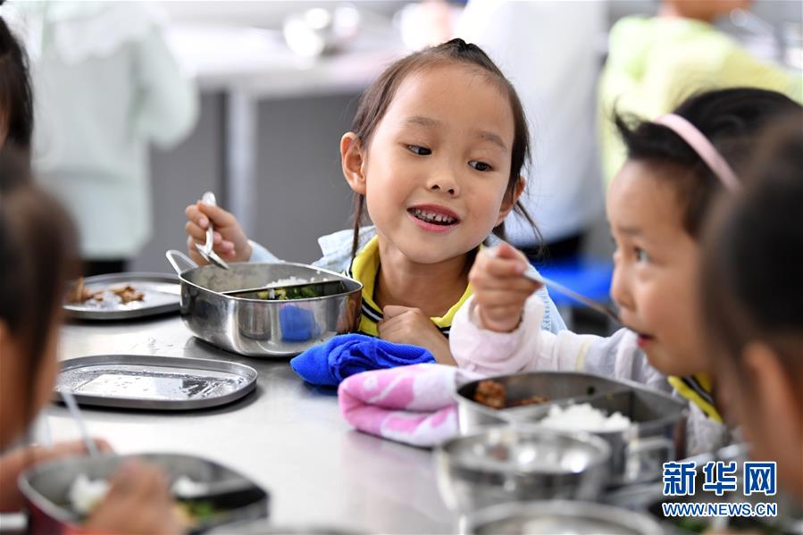 9月3日,金寨縣希望小學學生在吃午餐。新華社記者劉軍喜攝