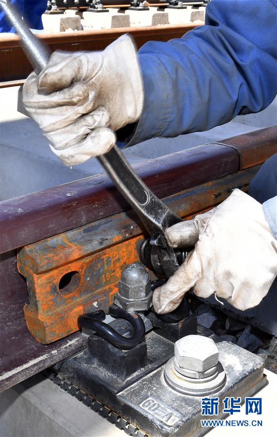 6月6日,負責鋪軌的中鐵十一局集團的建設者在現(xiàn)場作業(yè)。新華社記者李鑫攝