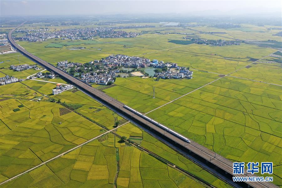 眼下,廣西賓陽(yáng)縣古辣鎮(zhèn)大面積稻田進(jìn)入收獲期,一列列南來(lái)北往的動(dòng)車從稻田間飛馳而過(guò),構(gòu)成一幅幅美麗的豐收?qǐng)D畫(huà)。