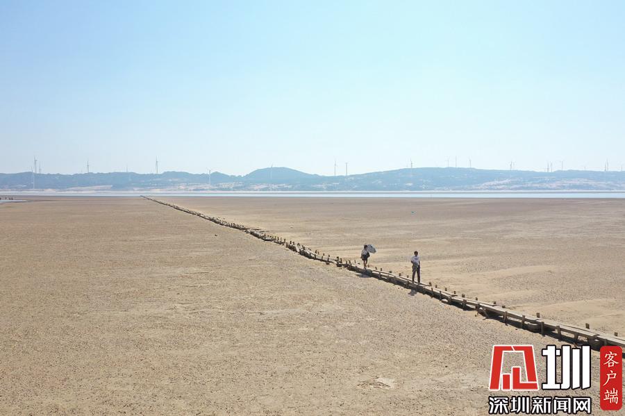 10月9日,江西省廬山市,游客行走在鄱陽湖湖區(qū)干涸的湖面上。新華社記者胡晨歡攝