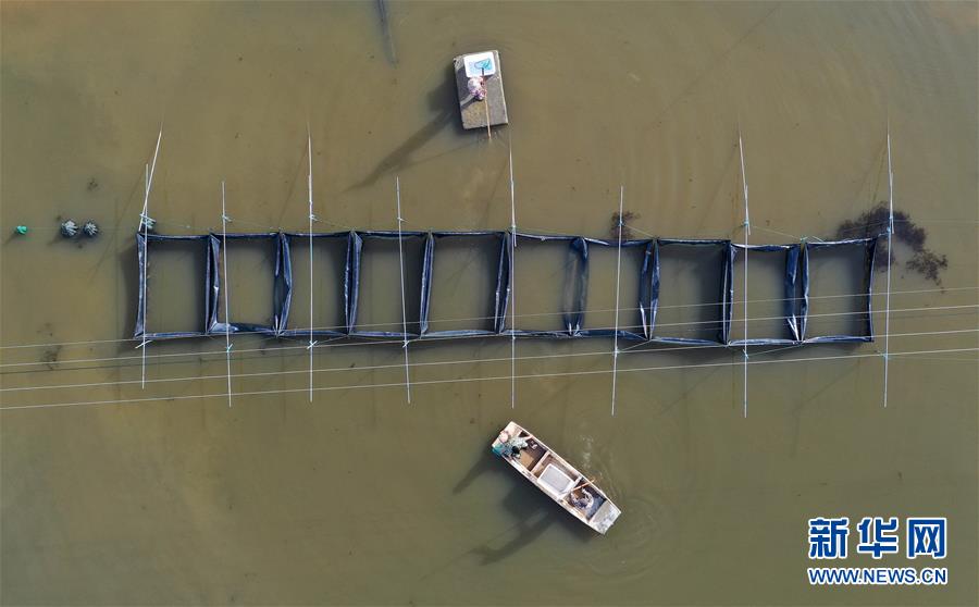 江西省南昌市新建區(qū)象山鎮(zhèn)河林村的農(nóng)戶正在大閘蟹養(yǎng)殖基地進(jìn)行捕撈(10月29日無人機(jī)拍攝)。 時(shí)下正值大閘蟹收獲的季節(jié),江西省南昌市新建區(qū)象山鎮(zhèn)河林村的村民忙著進(jìn)行大閘蟹的捕撈、包裝和外銷工作。近年來,當(dāng)?shù)匾劳休爡^(qū)內(nèi)河道縱橫、水田眾多的資源優(yōu)勢(shì),支持鼓勵(lì)當(dāng)?shù)剞r(nóng)村引進(jìn)發(fā)展大閘蟹養(yǎng)殖業(yè),目前已有大閘蟹特色養(yǎng)殖基地300余畝,年產(chǎn)值超過200萬元,為當(dāng)?shù)剞r(nóng)戶開辟一條特色養(yǎng)殖的致富路。 新華社記者 彭昭之 攝