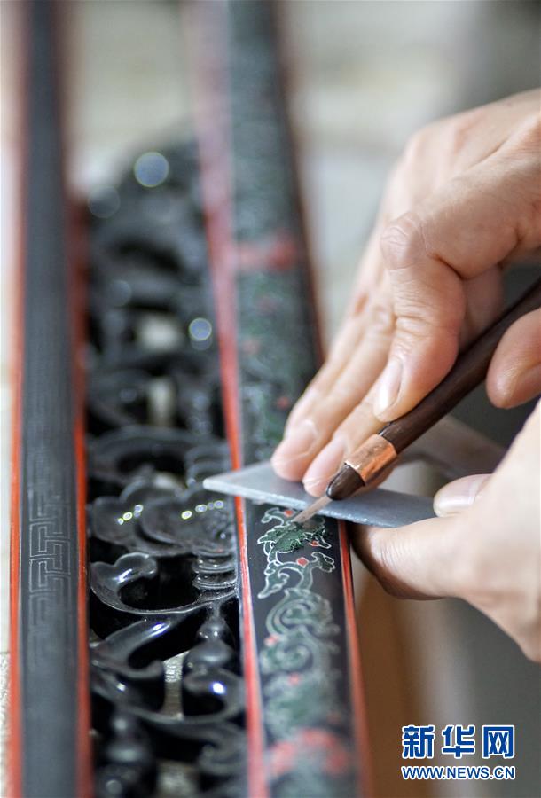 北京金漆鑲嵌有限責(zé)任公司的技師在制作漆藝制品(10月31日攝)。新華社記者李欣攝