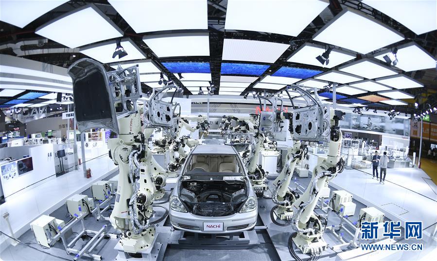 11月5日在第二屆進(jìn)博會裝備展區(qū)日本那智不二越公司展臺拍攝的超高速點焊SRA系列機(jī)器人。當(dāng)日,第二屆中國國際進(jìn)口博覽會在上海國家會展中心開幕。新華社記者王鵬攝