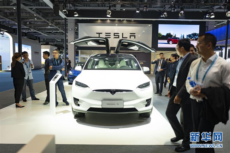 11月5日,參觀者在第二屆進(jìn)博會(huì)汽車展區(qū)特斯拉展臺(tái)參觀。新華社記者普布扎西攝
