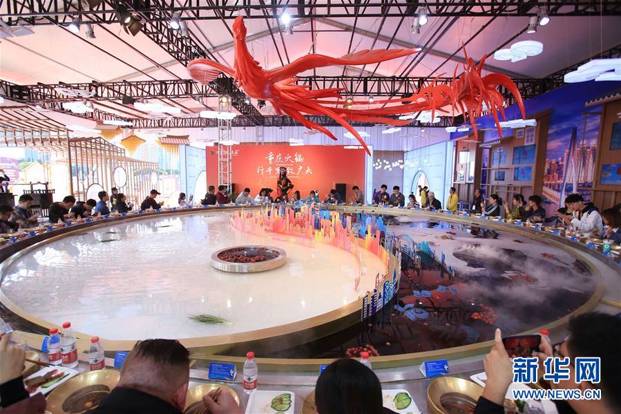 參觀者在第二屆進(jìn)博會上體驗(yàn)“天下第一大火鍋”試吃活動(11月8日攝)。新華社記者隋先凱攝