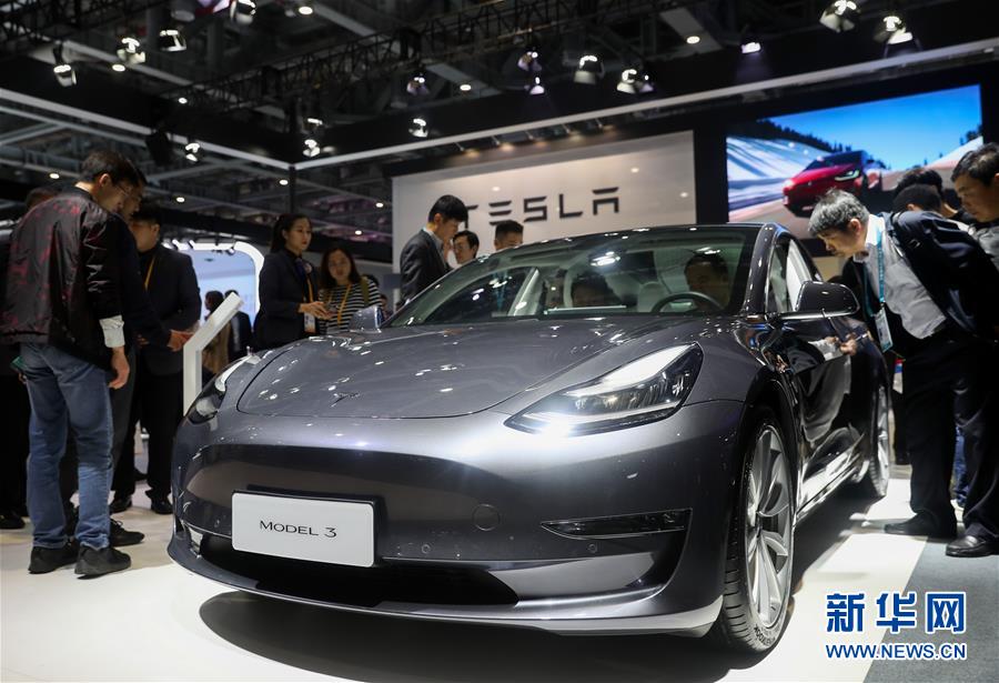 參觀者在第二屆進(jìn)博會汽車展區(qū)特斯拉展臺參觀特斯拉MODEL3汽車(11月6日攝)。新華社記者丁汀攝