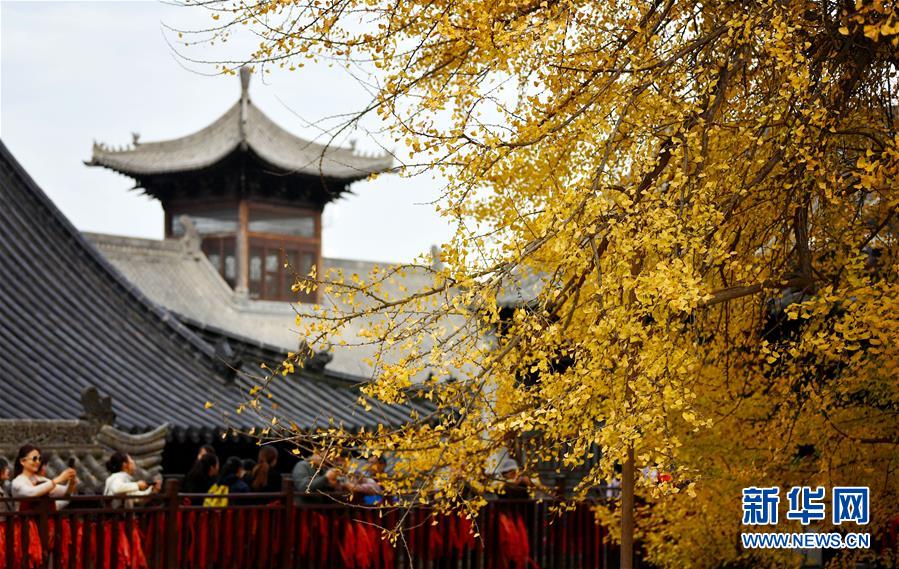 11月11日,游客在羅漢洞村古觀音禪寺觀賞千年銀杏樹。