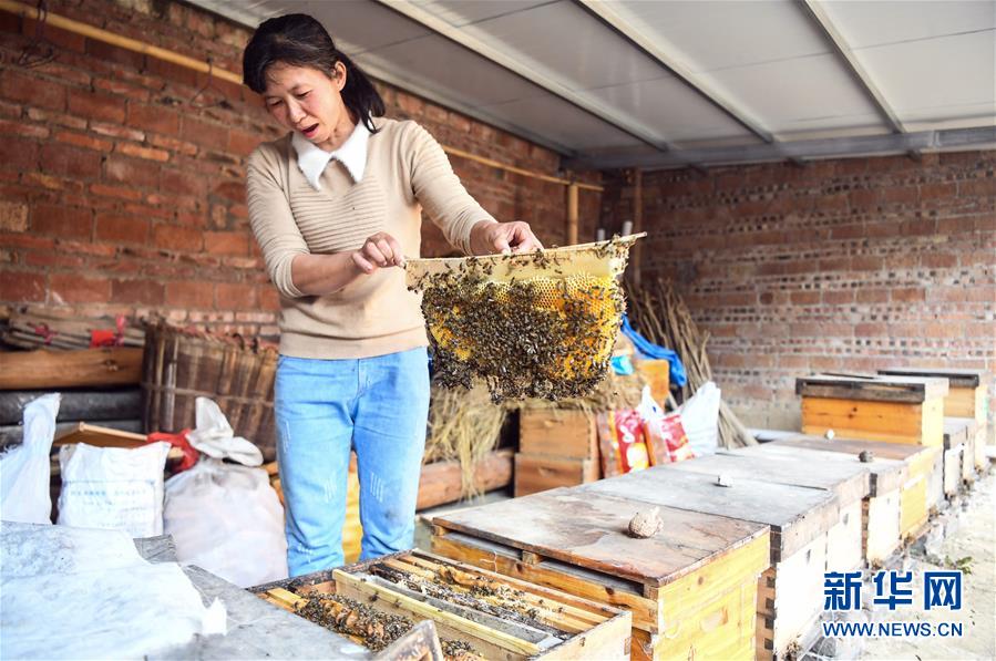這是葉德華在查看蜂箱(11月12日攝)。 新華社記者張愛林攝