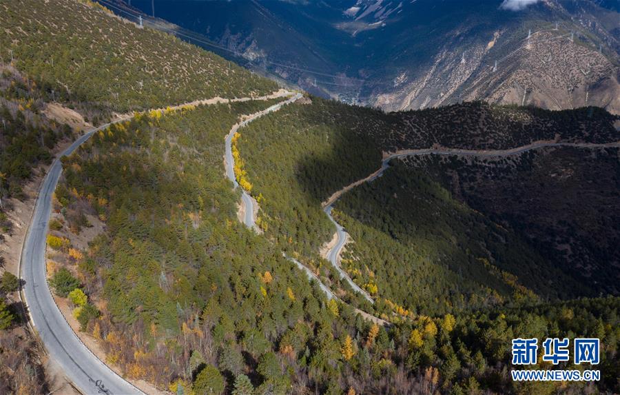 這是318國(guó)道覺(jué)巴山段。該段地處橫斷山脈的三江(金沙江、瀾滄江、怒江)流域(10月23日無(wú)人機(jī)拍攝)。新華社記者江宏景攝
