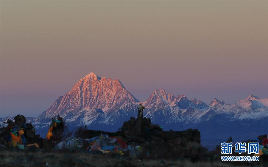 這是在川藏公路四川高爾寺山埡口拍攝的夕陽(yáng)下的雅拉雪山(2018年11月9日攝)。新華社記者江宏景攝