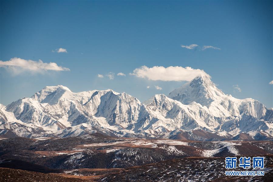 從318國道高爾寺山段遠眺四川貢嘎雪山(11月4日攝)。新華社記者江宏景攝
