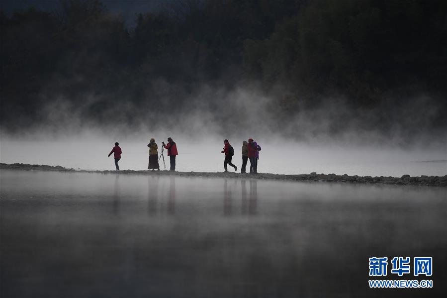 11月14日,游客在奇墅湖拍攝風(fēng)光。新華社記者劉軍喜攝