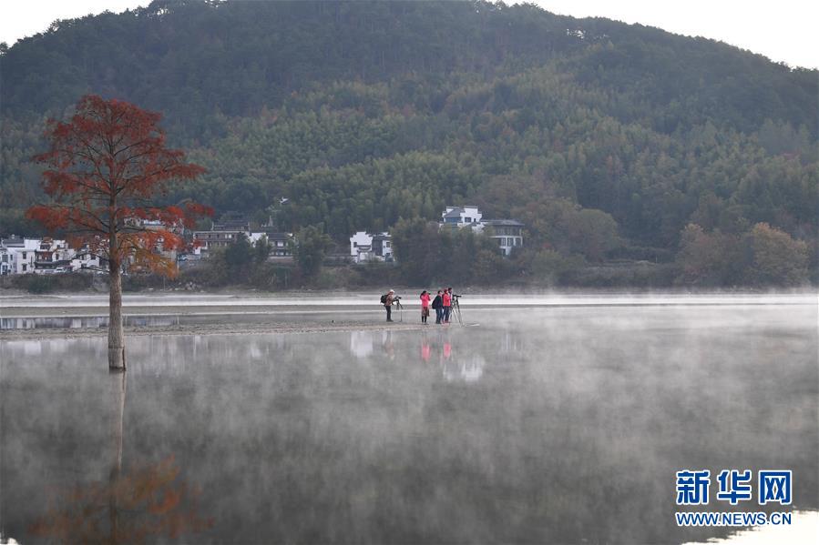 11月14日,游客在奇墅湖邊拍攝風(fēng)光。新華社記者劉軍喜攝