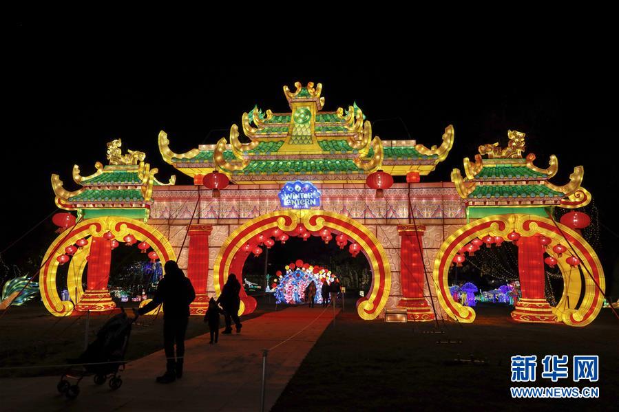 11月20日,在美國紐約斯塔滕島,游客在第二屆紐約花燈游園會上賞燈。當日,第二屆紐約花燈游園會在美國紐約斯塔滕島開幕,50余組各類花燈照亮夜空,吸引觀眾前來賞燈游玩。新華社記者李木子攝