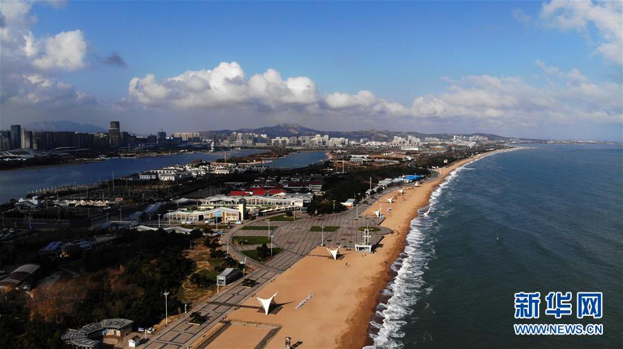 11月22日無人機拍攝的日照市萬平口海濱風(fēng)景區(qū)。山東省日照市萬平口海濱風(fēng)景區(qū)是當?shù)芈糜蔚囊粡垺懊保摼皡^(qū)憑借優(yōu)美的海灘、良好的水質(zhì)吸引了不少游客。新華社記者王凱攝