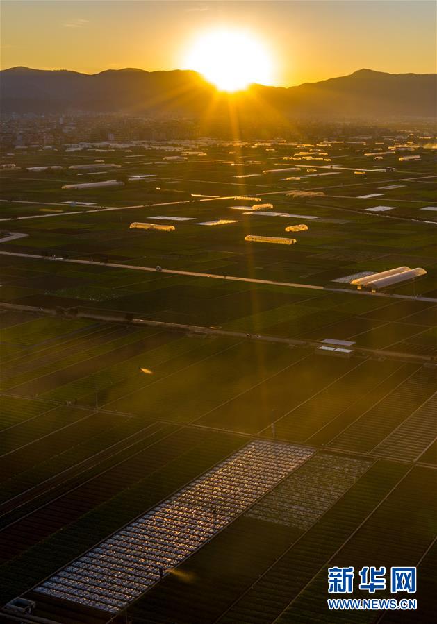 這是云南省玉溪市通??h的田園風(fēng)光(11月23日無人機(jī)拍攝)。初冬時節(jié),云南省玉溪市通海縣風(fēng)景秀麗,山巒、湖水與農(nóng)田組成了一幅美麗的田園詩畫卷。新華社記者胡超攝