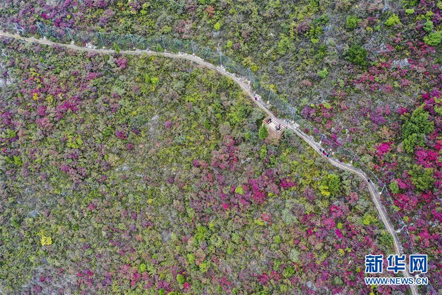 11月23日,游客在位于長(zhǎng)江巫峽段的巫山文峰景區(qū)游覽。初冬時(shí)節(jié),位于重慶巫山縣境內(nèi)的長(zhǎng)江巫峽段呈現(xiàn)出一江碧水東流、兩岸層林盡染的秀美景象。新華社記者王全超攝