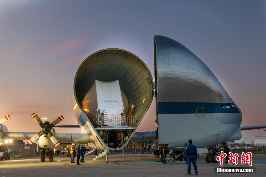 當(dāng)?shù)貢r間11月25日清晨,美國宇航局(NASA)最大的運輸機“超級孔雀魚”搭載“獵戶座”宇宙飛船及設(shè)備,從佛羅里達州肯尼迪航天中心出發(fā),抵達俄亥俄州曼斯菲爾德拉姆機場,為“阿爾特彌斯”登月計劃作準(zhǔn)備。圖片來源:視覺中國