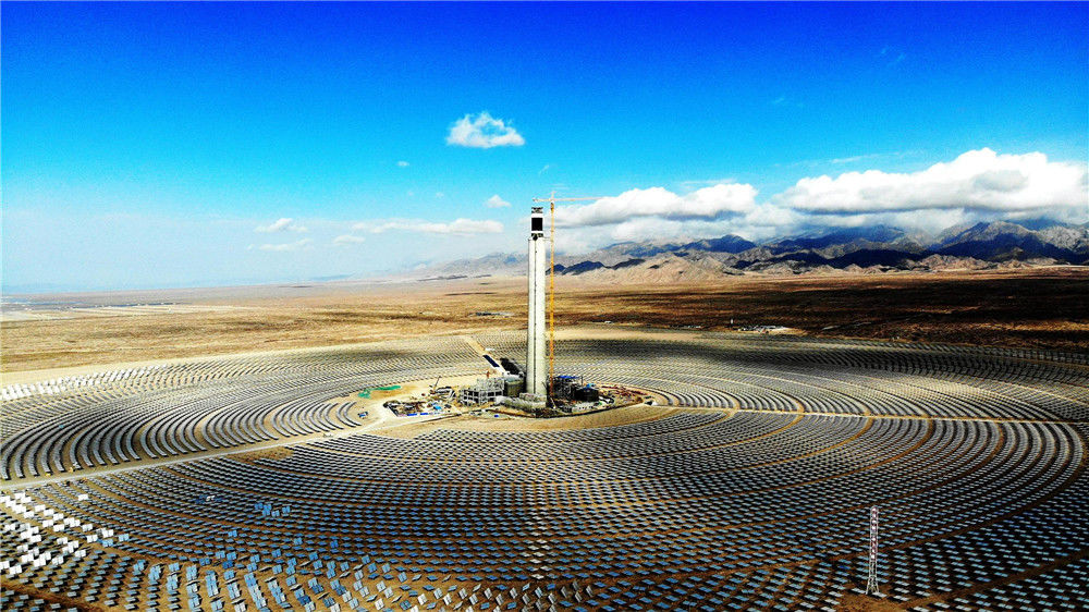 2018年10月13日,地處青海省海西州德令哈市的中控太陽能發(fā)電有限公司10兆瓦塔式熔鹽光熱電站。位于中國西部的青海省,有“三江源”“中華水塔”之稱。如今,青海清潔能源正在從“風(fēng)生水起”走向“風(fēng)光無限”。青海太陽能資源約占中國的11%,光熱資源平均年輻射總量可達(dá)每平方米5860—7400兆焦耳,僅次于西藏;同時(shí),該省可用于新能源開發(fā)的荒漠土地面積約10萬平方公里,裝機(jī)規(guī)??蛇_(dá)35億千瓦,折合年發(fā)電量約5.6萬億千瓦時(shí),是三峽電站年發(fā)電量的56倍。