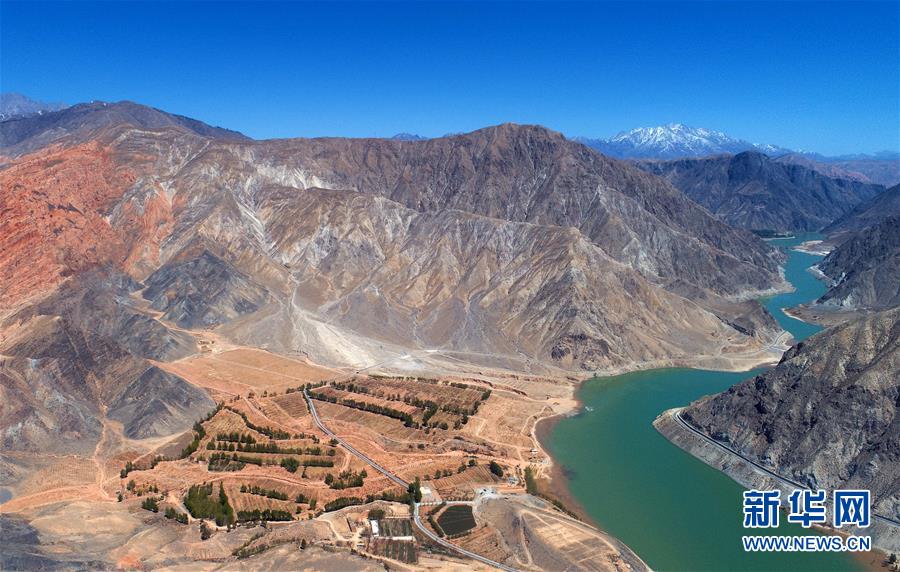 在青海貴德,千姿湖景區(qū)內(nèi)群山與湖水相映成畫(4月16日無人機(jī)拍攝)。新華社記者張宏祥攝