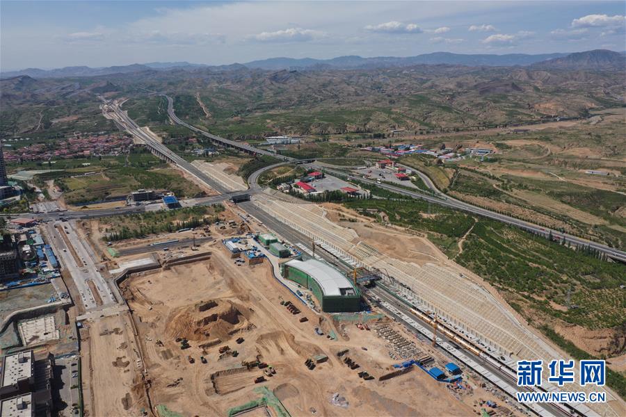 建設(shè)中的京張高鐵下花園北站(5月29日無人機拍攝)。新華社記者邢廣利攝
