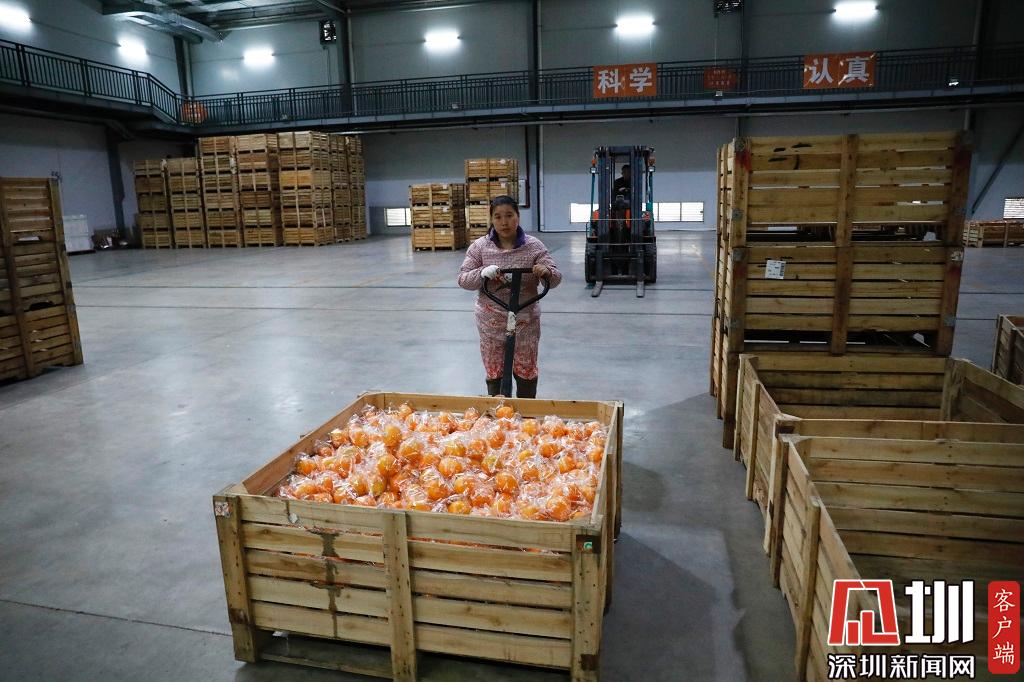 一位工作人員正在運(yùn)送橙子。