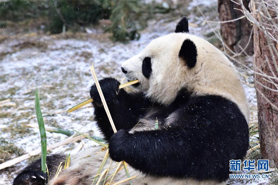 11月29日,在西寧熊貓館內(nèi),一只大熊貓?jiān)诔灾褡印? 新華社記者 吳剛 攝