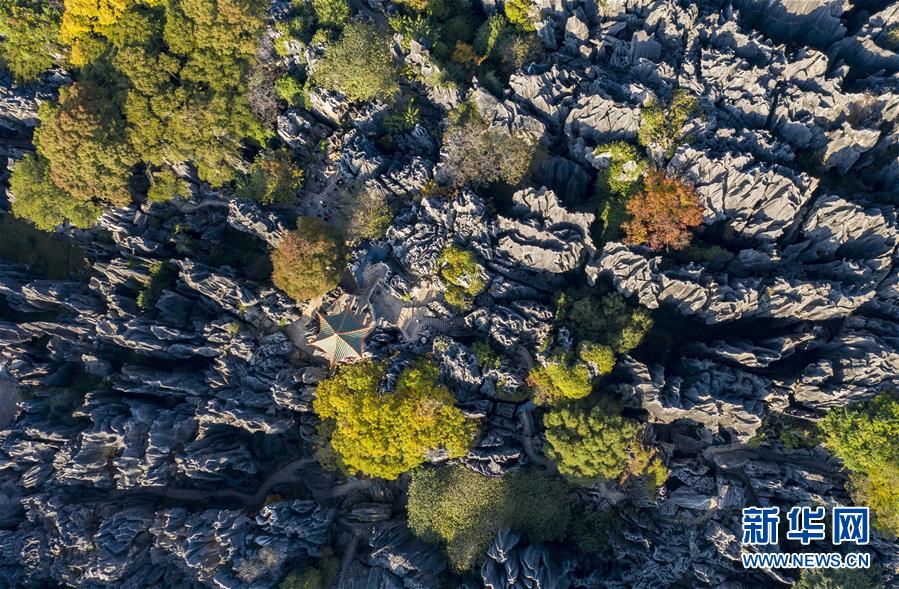 11月28日,空中俯瞰石林景區(qū)(無人機(jī)拍攝)。新華社記者江文耀攝