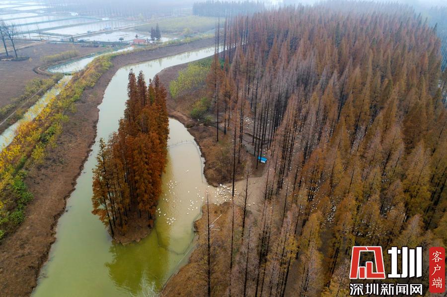 江蘇泗洪5000多只鵝林場吃食 場面壯觀