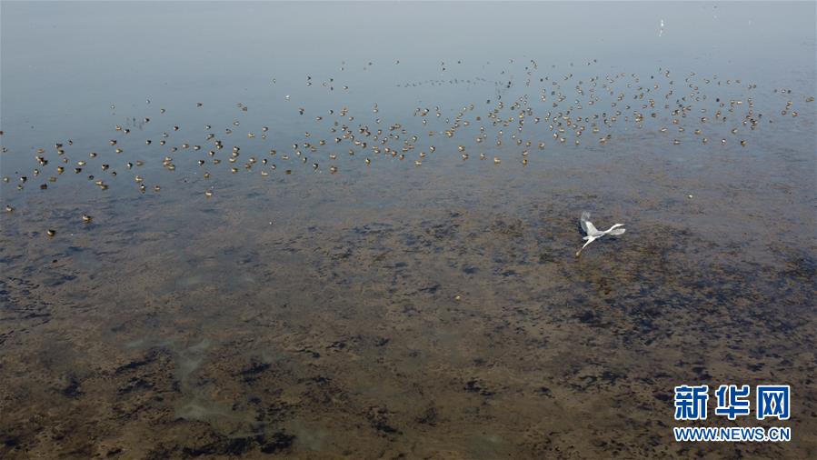 12月7日,一群候鳥在升金湖停留(無人機(jī)拍攝)。