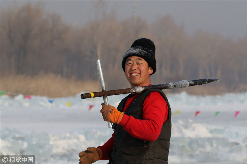 2018年12月08日,黑龍江省哈爾濱市,松花江采冰,今日正式出冰。本次采冰,是為第二十屆哈爾濱冰雪大世界的建造而進(jìn)行。視覺中國