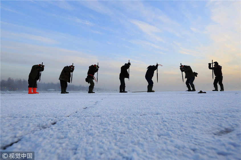 寒冬采冰人:起早貪黑 “淘金”冰雪